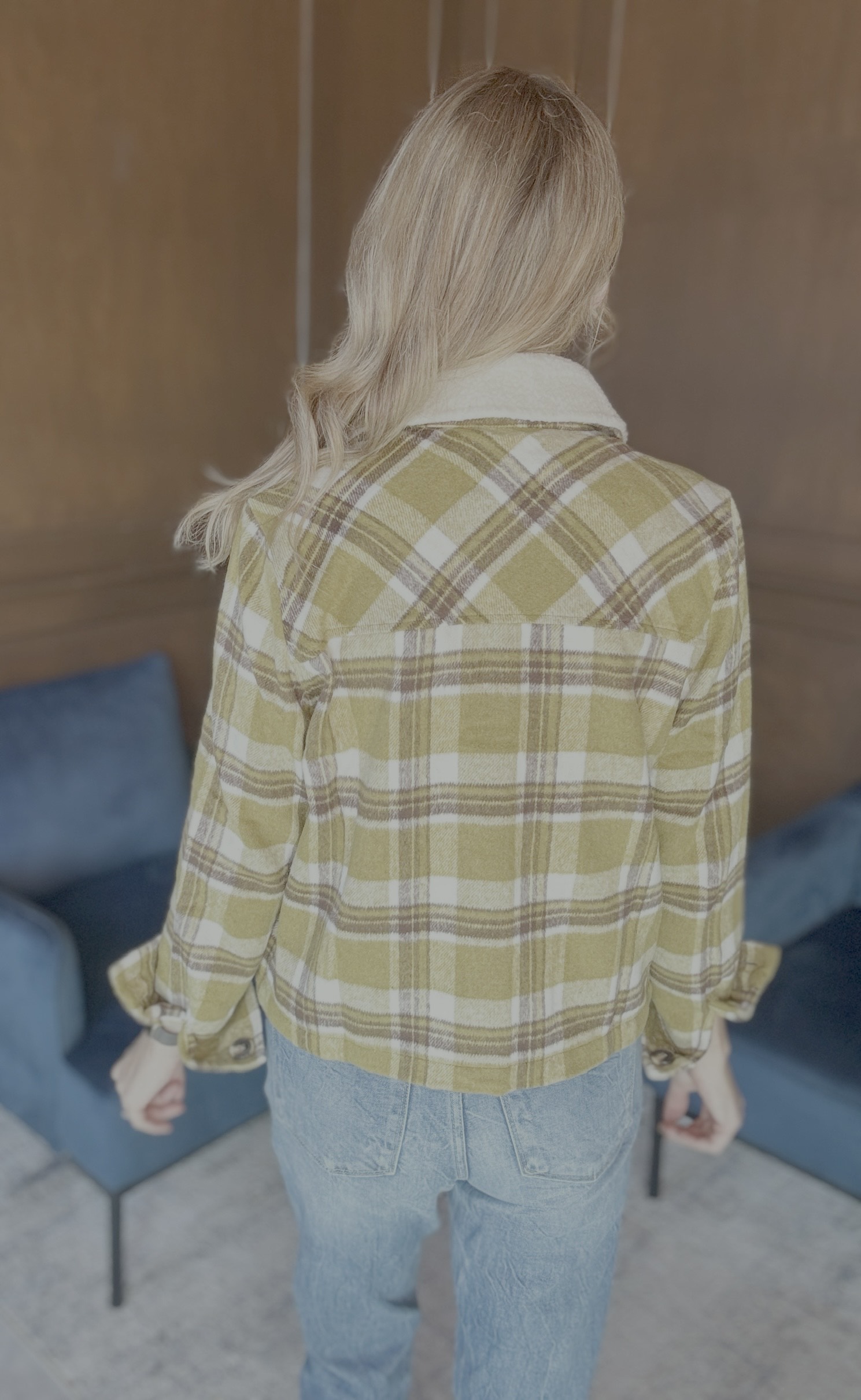 Amy Plaid Shacket with Faux Fur Collar – Olive & Brown Fall Layering Piece