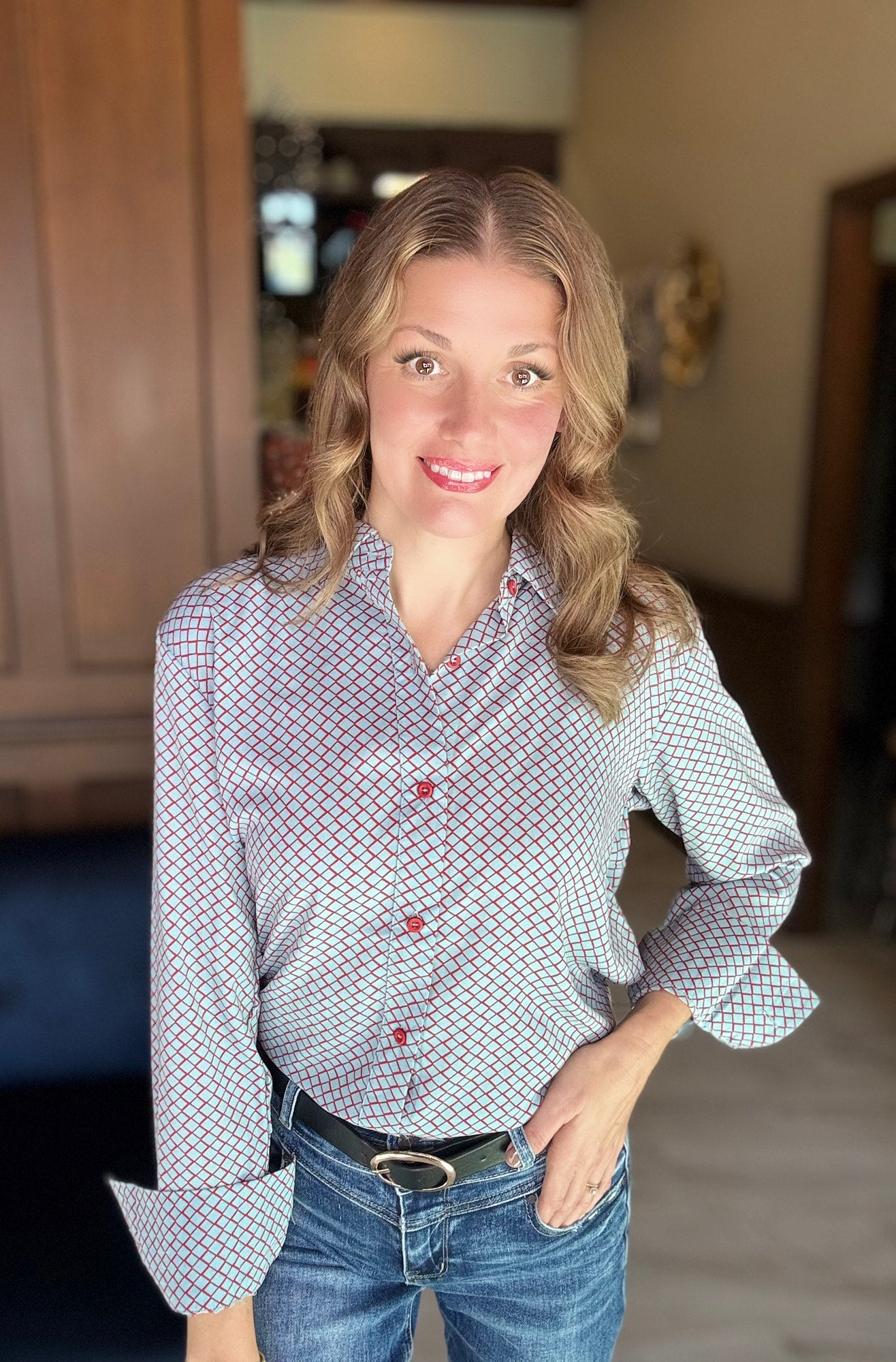 With its collared neckline, button-down front, and relaxed silhouette, it’s versatile enough for work, brunch, or a polished weekend look. The buttoned cuffs add a tailored finish, while the breathable fabric keeps it comfortable all day long.