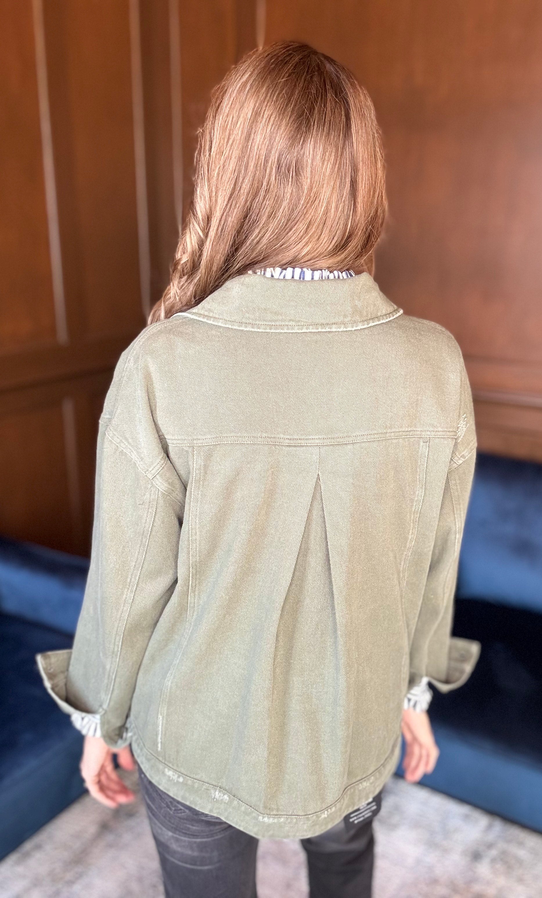 Crissy Twill Distressed Jacket – Cotton Utility Layer with Pleated Back