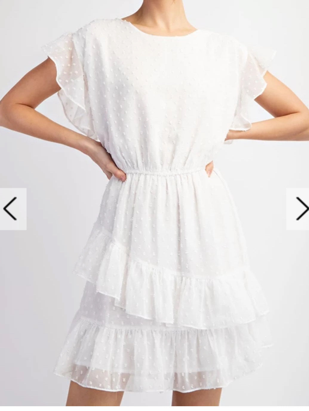 Sweet, stylish, and effortlessly flirty—the Tufted Dot Ruffle Mini Dress is your new go-to for any sunny day or special outing. Crafted from lightweight 100% polyester, this mini dress features a delicately textured tufted dot fabric that adds subtle charm and dimension. The ruffled sleeves and skirt bring a playful, feminine flair, while the cinched waist flatters your figure for a perfectly put-together silhouette.