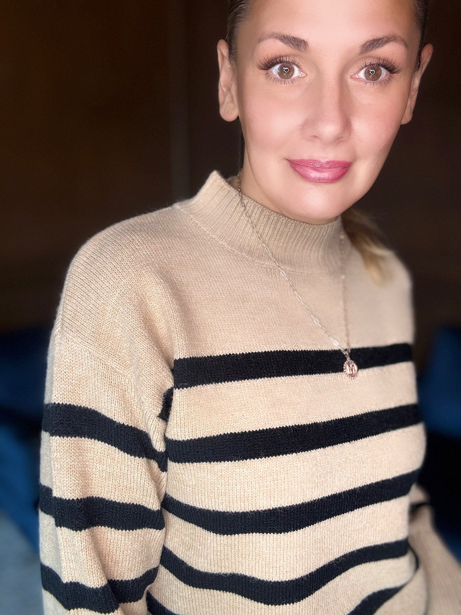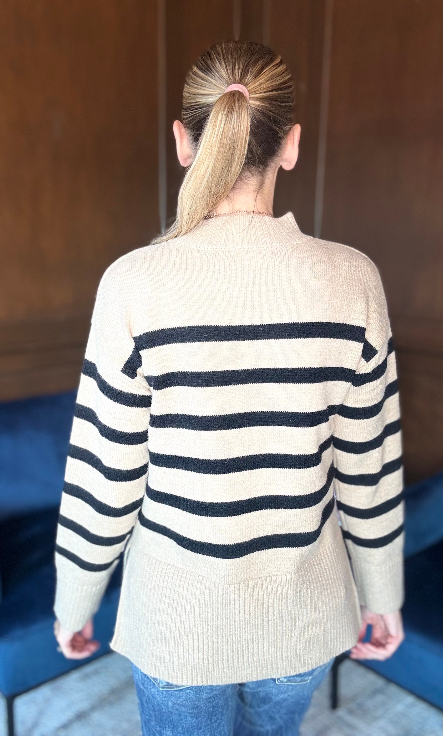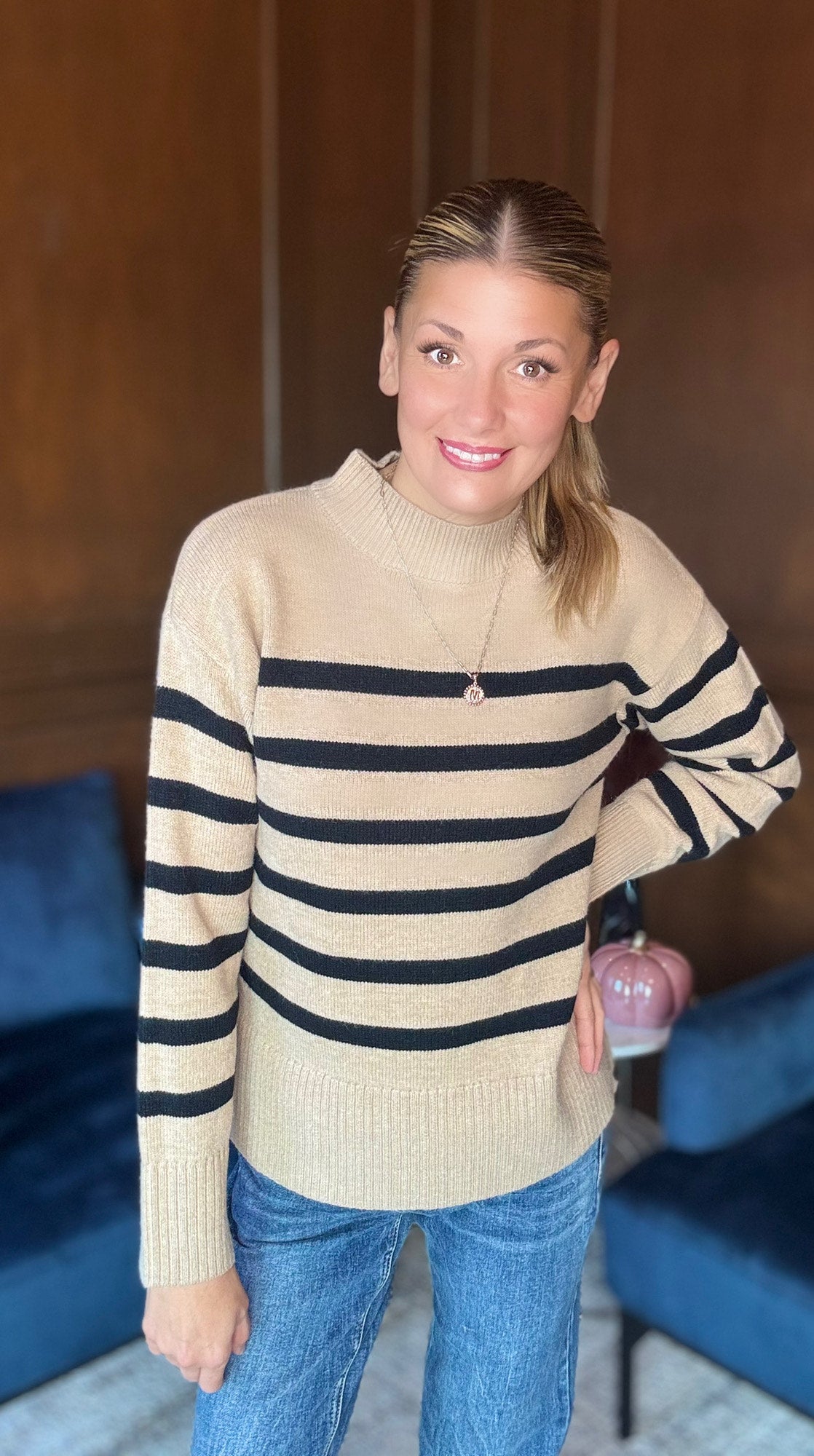 Gretchen Classic Striped Mock Neck Sweater – Camel & Black Knit