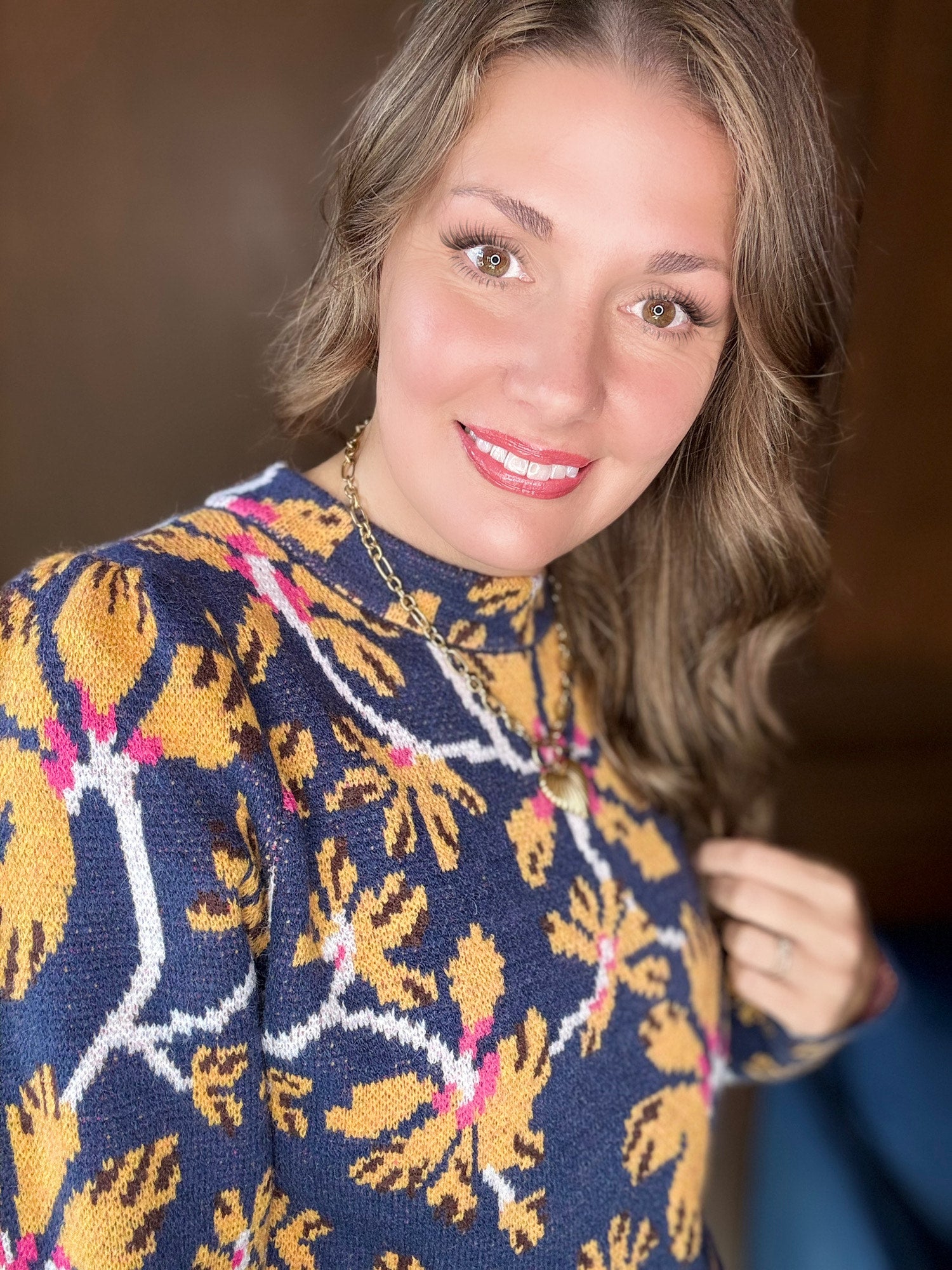 Henny Floral Mock Neck Sweater | Feminine Knit Pullover Top