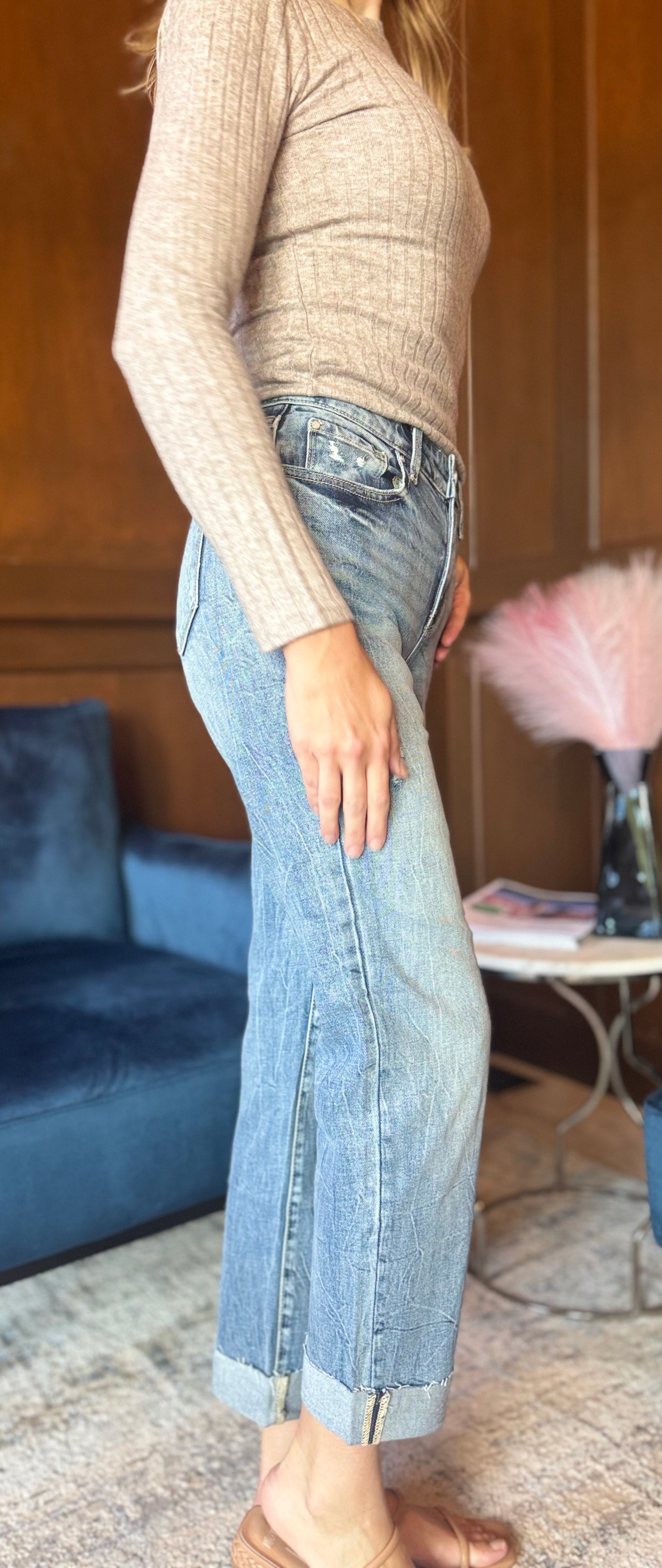 Meet the Patsy High Rise Comfort Baggy Straight Jeans with Cuffed Hem—your new denim essential. Designed with a relaxed, lived-in feel, these jeans bring effortless style and everyday comfort to your wardrobe.